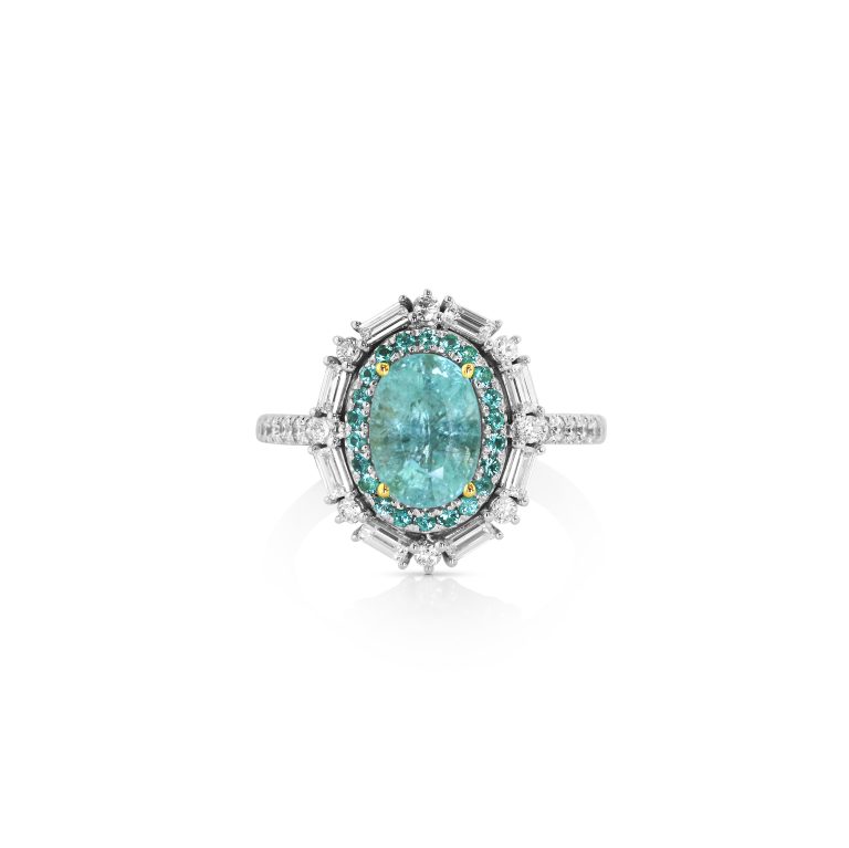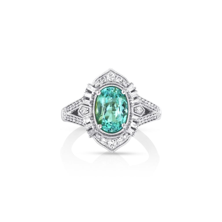 Emerald-Cut Paraiba and Baguette Diamond Ring