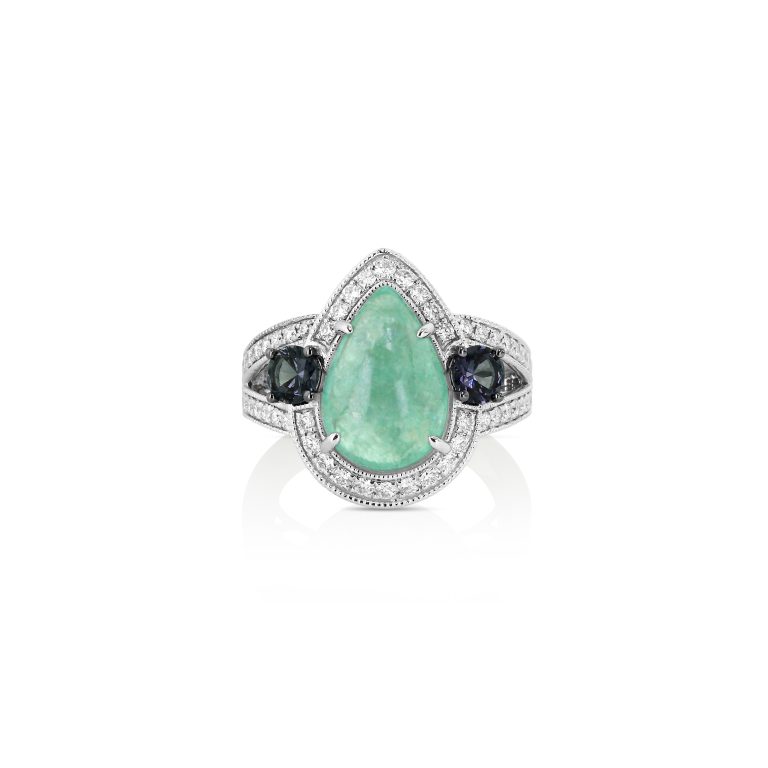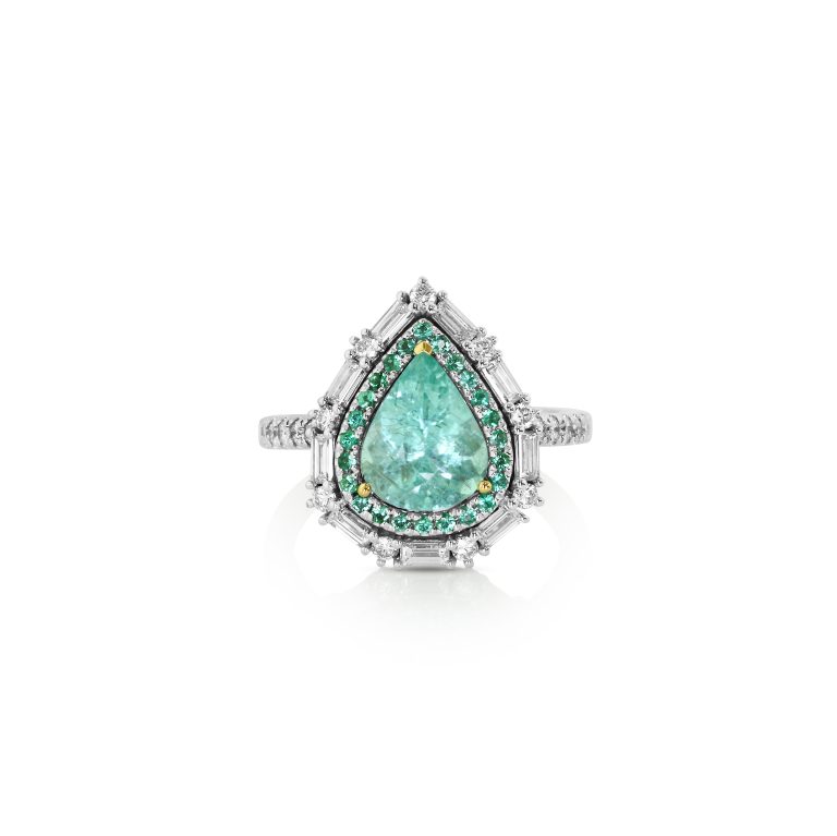 Pear-Shaped Paraiba and Diamond Halo Ring
