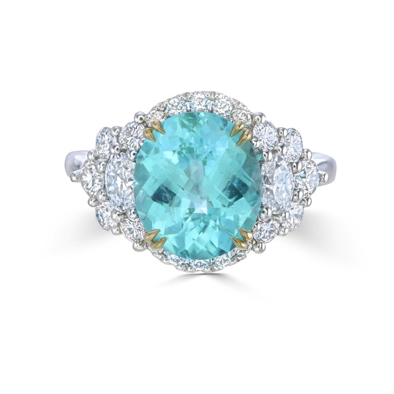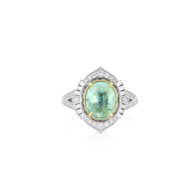 Vintage-Inspired Paraiba and Baguette Diamond Ring