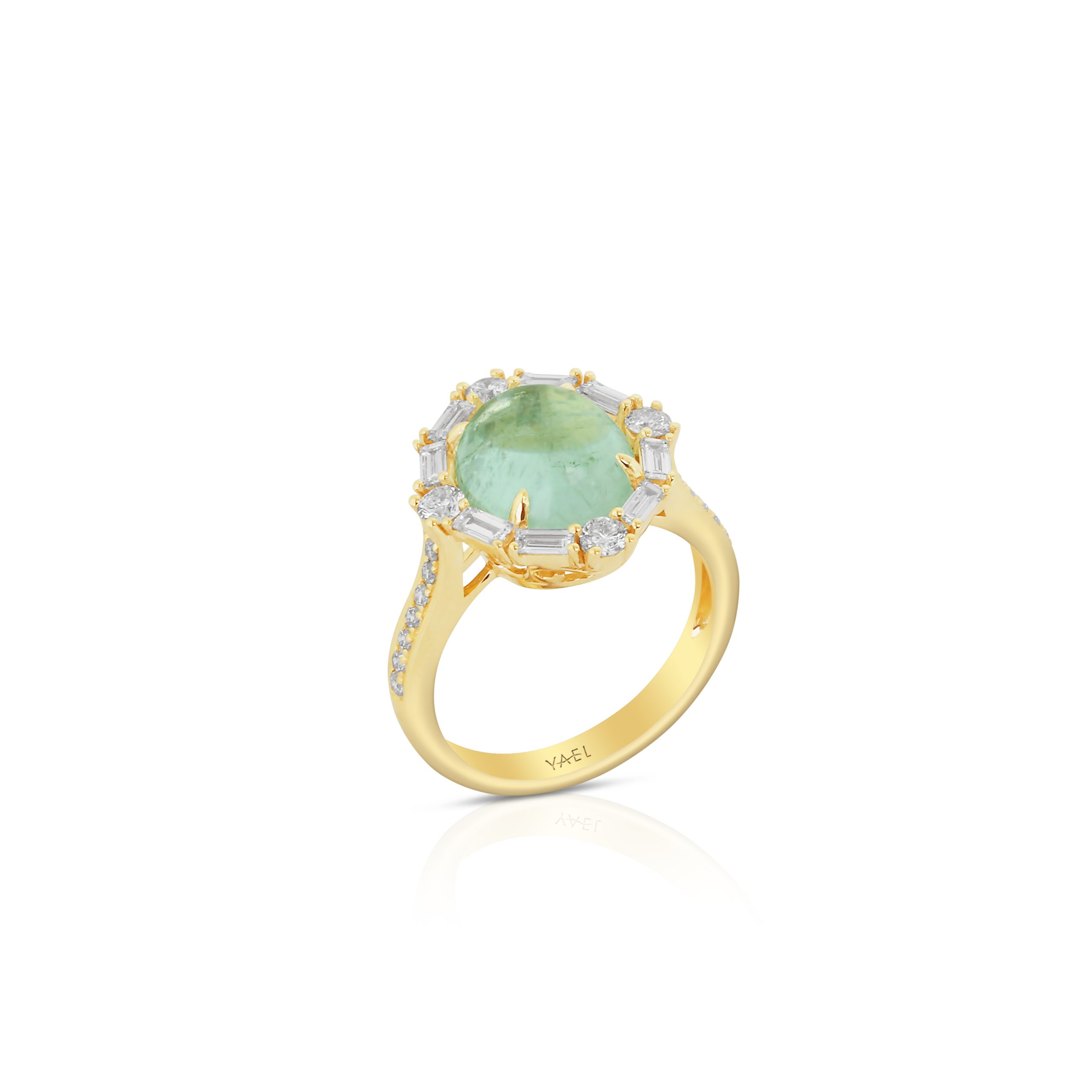 This 18kt yellow gold ring highlights a glowing 3.87 oval Paraiba at its center. Accented with 0.41 baguette and 0.39 round diamonds in a radiant sunburst design, it captures light from every angle. Bold yet elegant, it’s a timeless treasure for any fine jewelry lover.