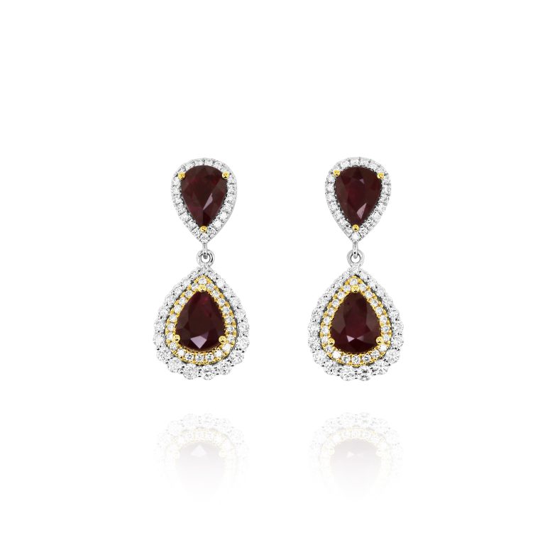 Pear Ruby and Diamond Dangle Earrings