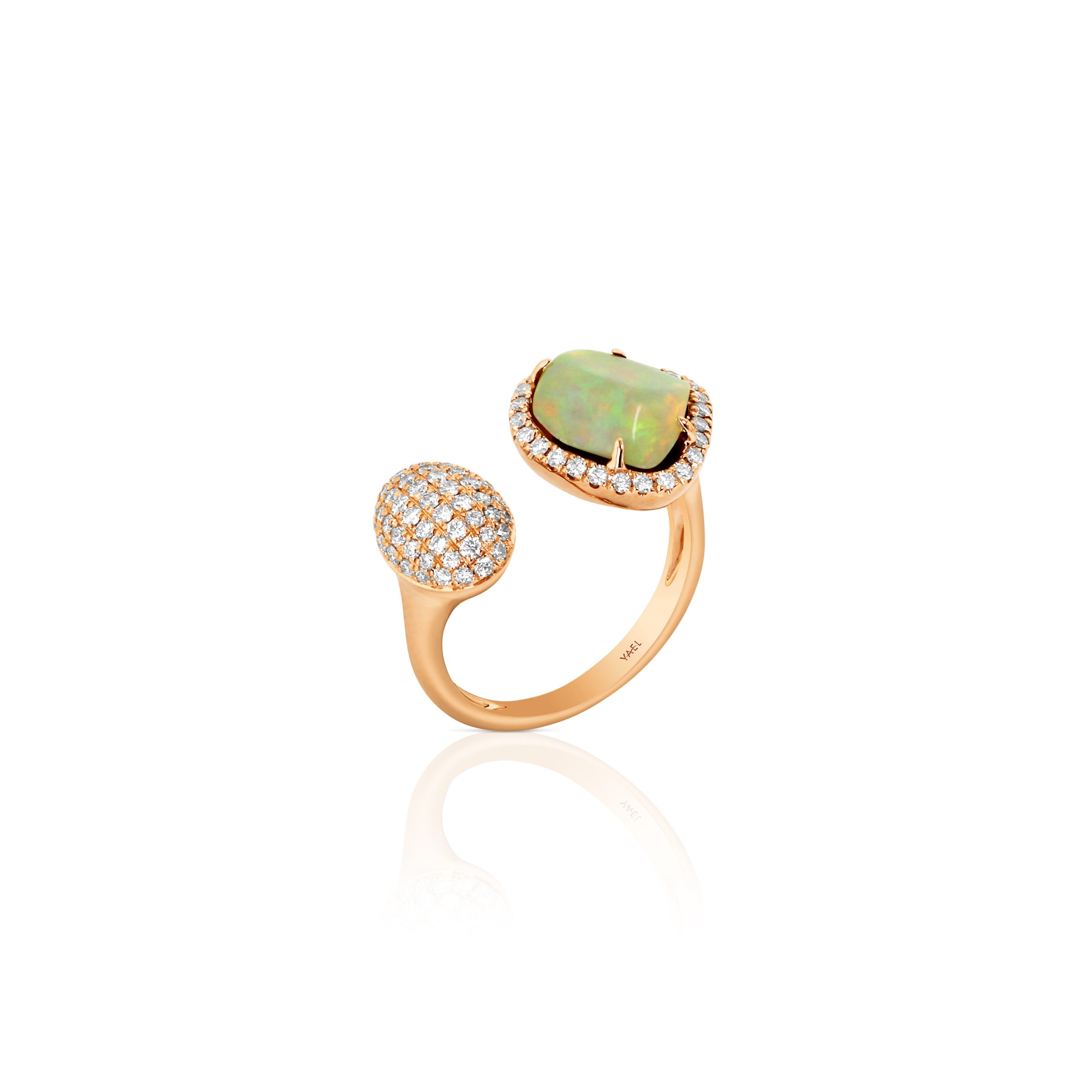 A luminous 1.49 opal set alongside 0.57 diamonds, creating a delicate yet impa ful statement piece.