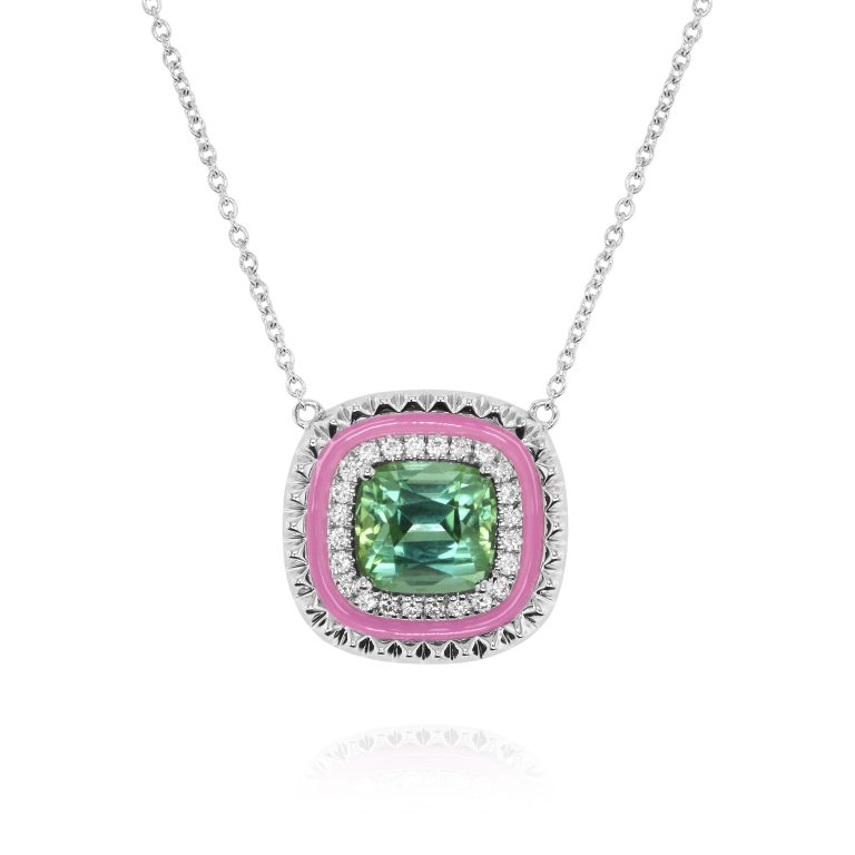 Green Tourmaline Pink Enamel Ring